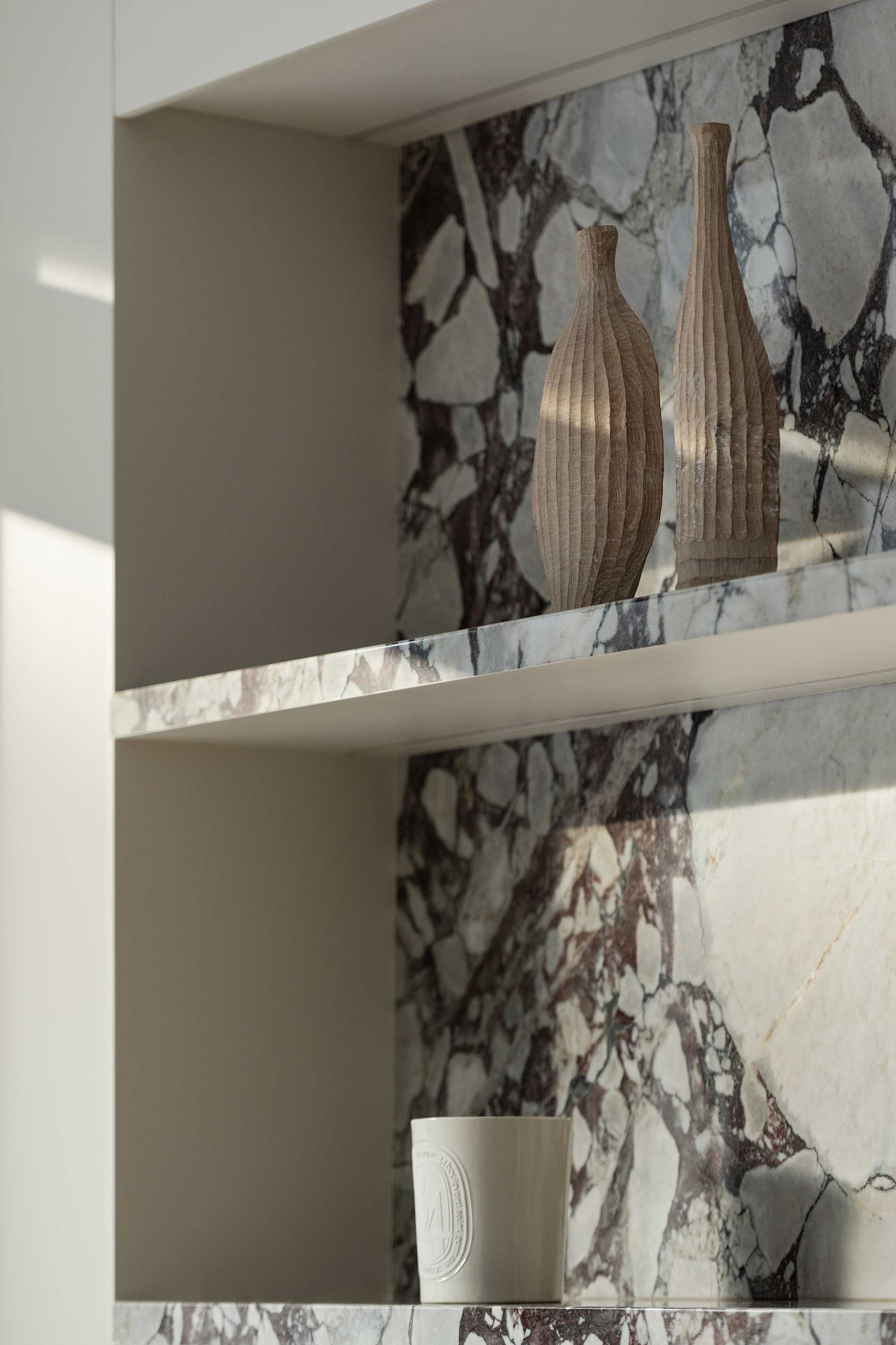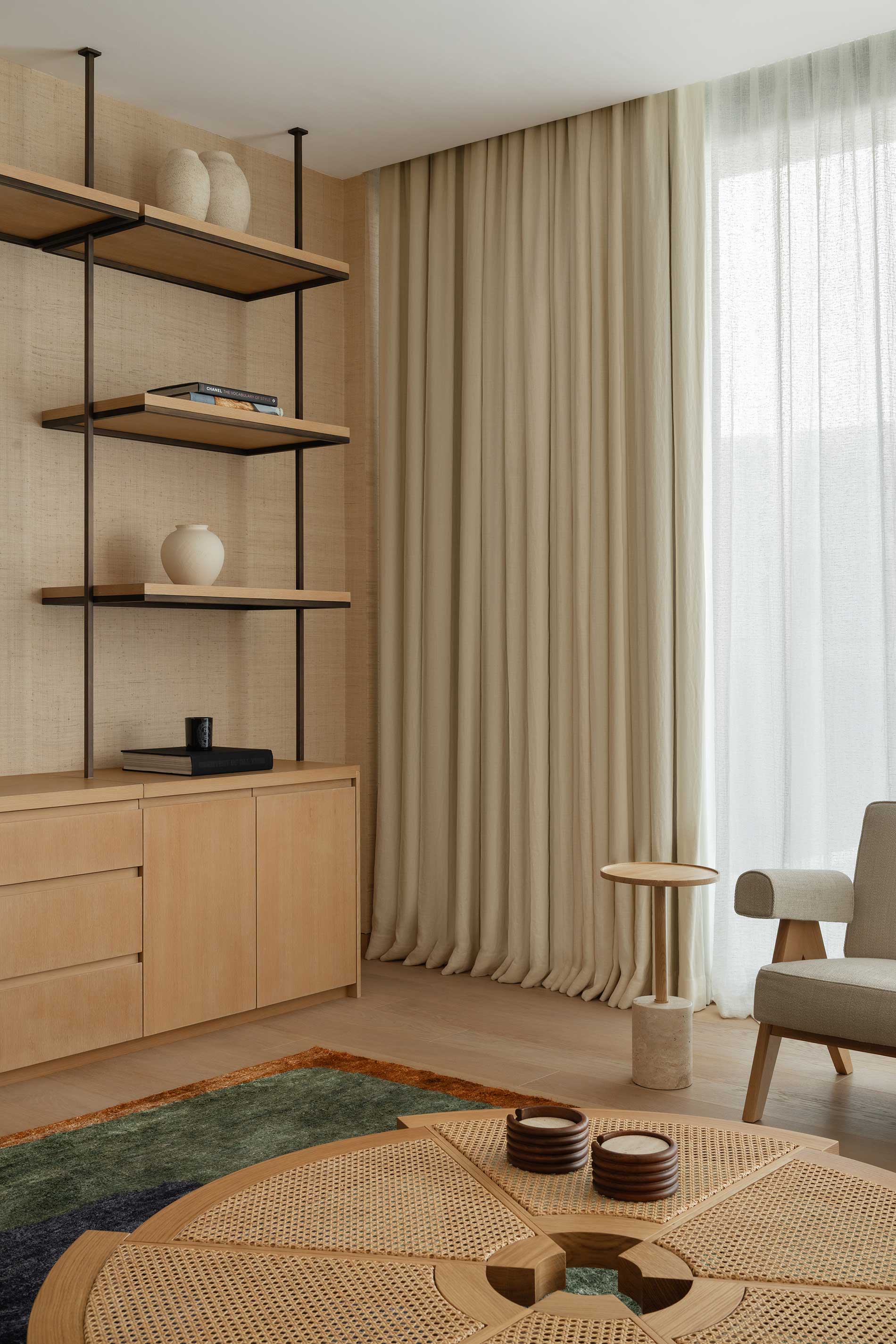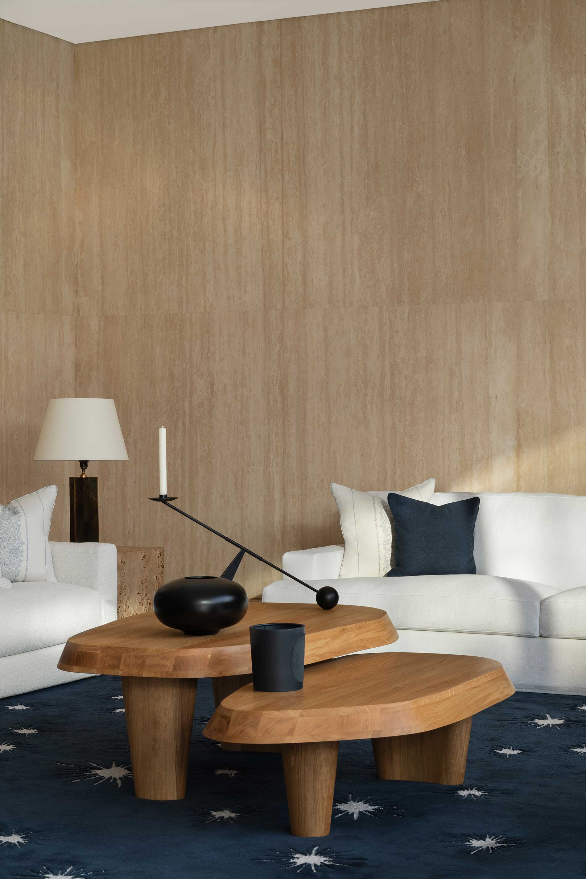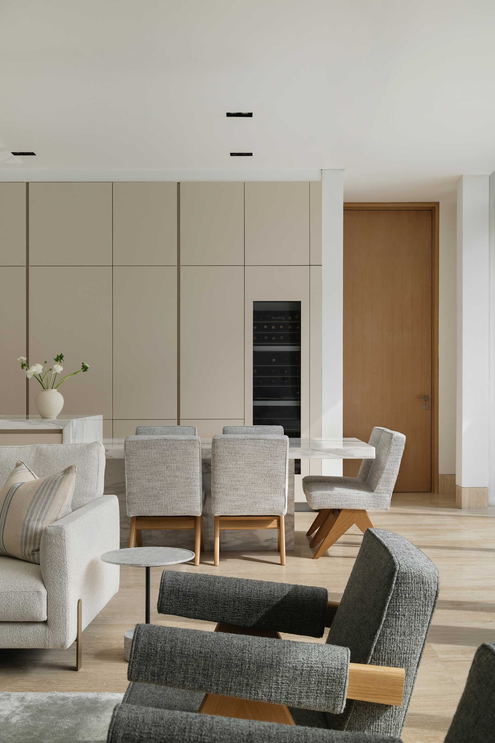 THIS FAMILY VILLA IN DUBAI WAS REIMAGINED WITH OUR SOULFUL APPROACH TO DESIGN, AN AESTHETIC THAT BALANCES SERENITY WITH CHARACTER. INSPIRED BY THE SURROUNDING DESERT LANDSCAPE AND THE NEARBY SEA, WE CREATED A SOOTHING, NEUTRAL BASE AND INFUSED IT WITH VIBRANT ACCENTS IN SHADES OF TURQUOISE AND BLUE, ECHOING THE COLORS OF THE OCEAN. EVERY DETAIL WAS INTENTIONAL: ANTIQUE PIECES WERE CAREFULLY SOURCED ACROSS EUROPE, WHILE EXPRESSIVE FURNITURE AND CUSTOM JOINERY WERE CRAFTED IN COLLABORATION WITH EUROPEAN ARTISANS. LOCALLY SOURCED MARBLE GROUNDS THE SPACE IN ITS ENVIRONMENT, WHILE BESPOKE FURNITURE PIECES - DESIGNED IN OUR STUDIO AND MADE IN OUR WORKSHOP IN ITALY - ADD A TACTILE RICHNESS. THE FINAL RESULT IS A HOME THAT FEELS CALM YET EXPRESSIVE, ELEGANTLY LAYERED WITH TEXTURES, TONES, AND PERSONALITY, PERFECTLY COMPLEMENTING THE CLIENT'S ART COLLECTION.