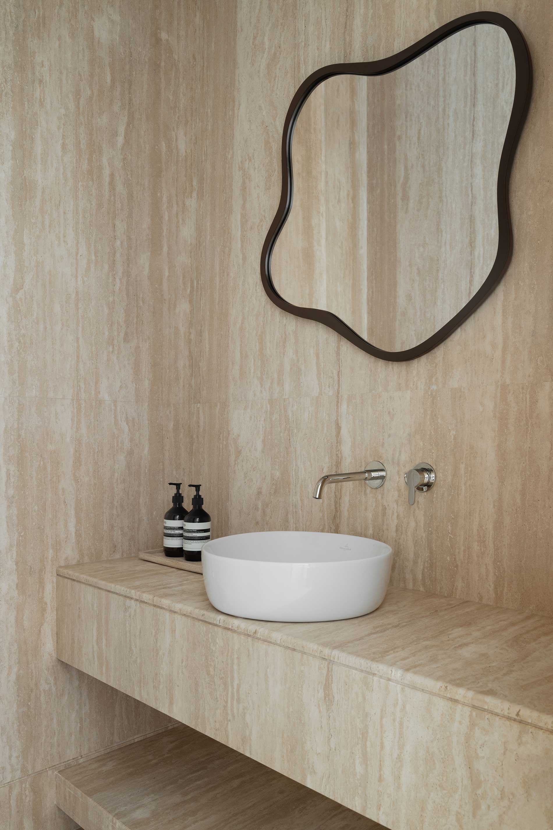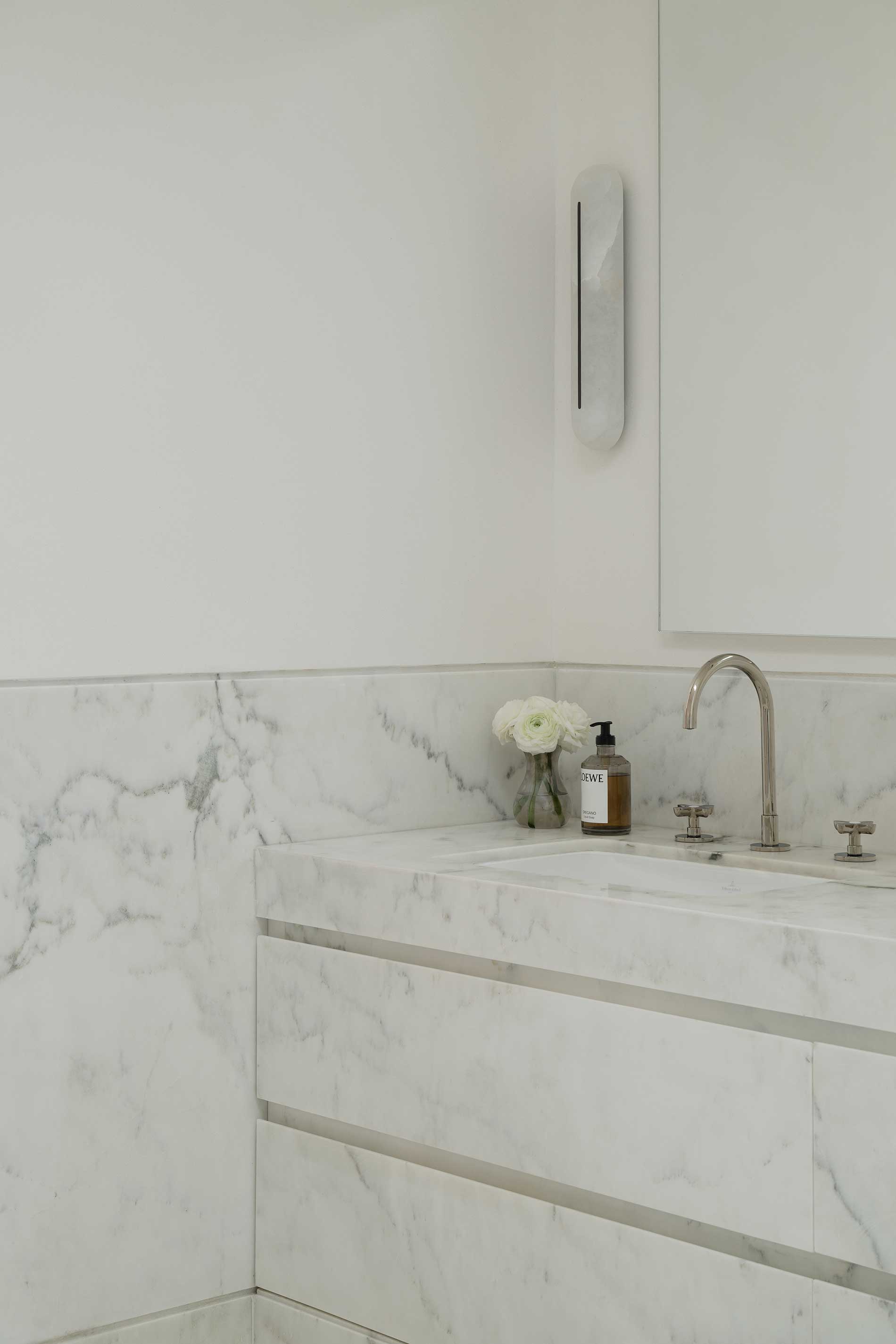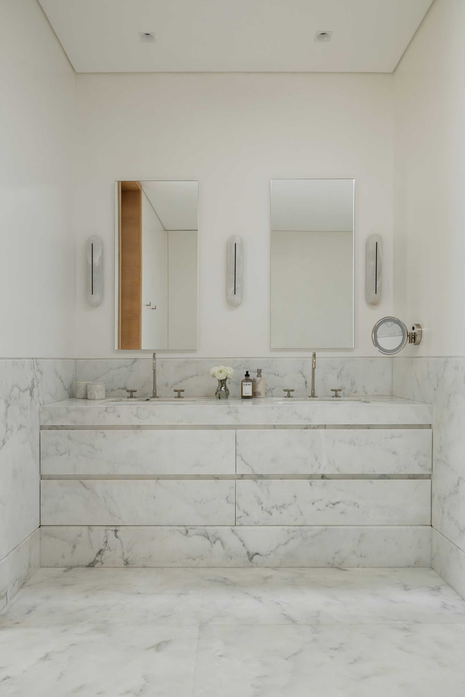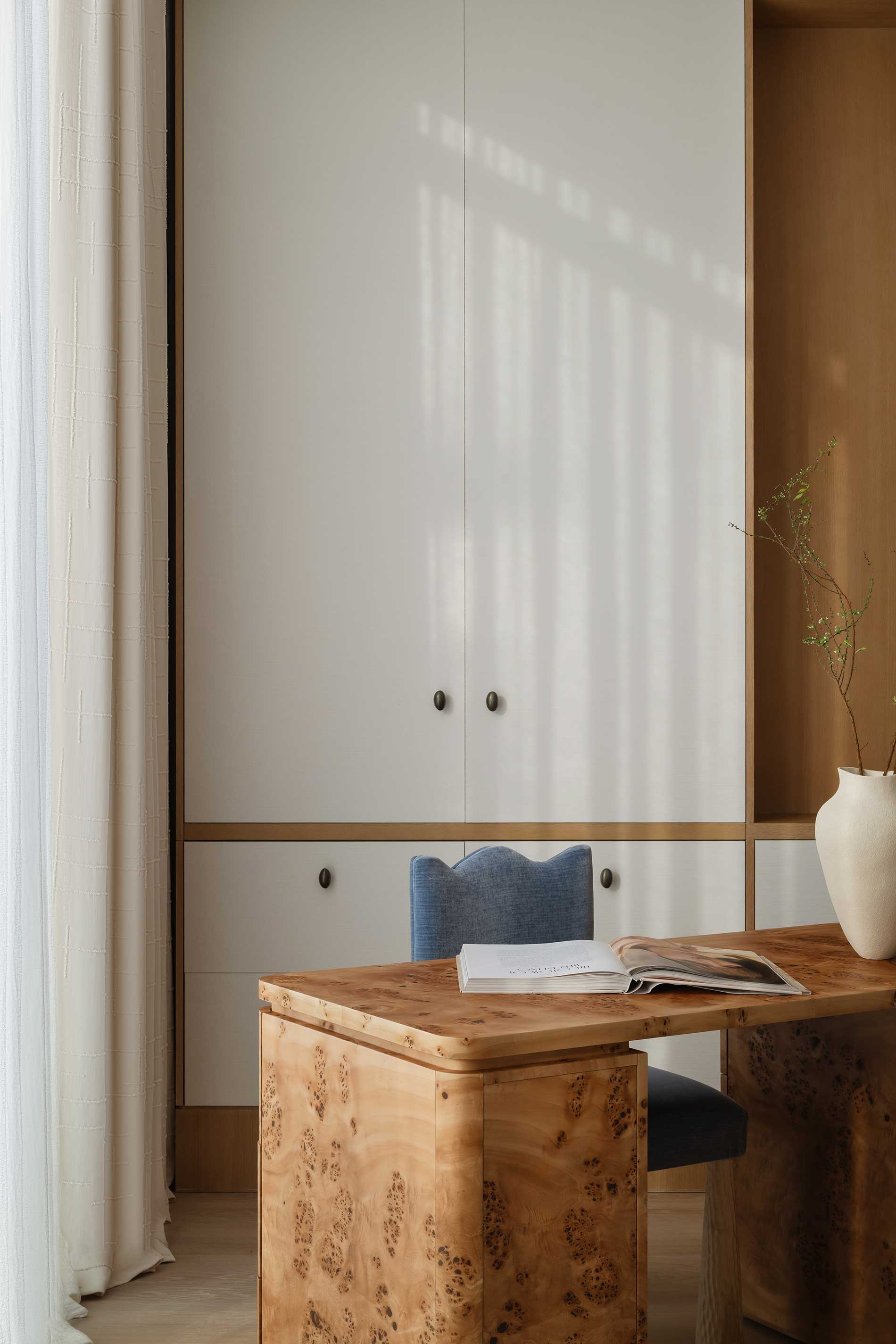 THIS FAMILY VILLA IN DUBAI WAS REIMAGINED WITH OUR SOULFUL APPROACH TO DESIGN, AN AESTHETIC THAT BALANCES SERENITY WITH CHARACTER. INSPIRED BY THE SURROUNDING DESERT LANDSCAPE AND THE NEARBY SEA, WE CREATED A SOOTHING, NEUTRAL BASE AND INFUSED IT WITH VIBRANT ACCENTS IN SHADES OF TURQUOISE AND BLUE, ECHOING THE COLORS OF THE OCEAN. EVERY DETAIL WAS INTENTIONAL: ANTIQUE PIECES WERE CAREFULLY SOURCED ACROSS EUROPE, WHILE EXPRESSIVE FURNITURE AND CUSTOM JOINERY WERE CRAFTED IN COLLABORATION WITH EUROPEAN ARTISANS. LOCALLY SOURCED MARBLE GROUNDS THE SPACE IN ITS ENVIRONMENT, WHILE BESPOKE FURNITURE PIECES - DESIGNED IN OUR STUDIO AND MADE IN OUR WORKSHOP IN ITALY - ADD A TACTILE RICHNESS. THE FINAL RESULT IS A HOME THAT FEELS CALM YET EXPRESSIVE, ELEGANTLY LAYERED WITH TEXTURES, TONES, AND PERSONALITY, PERFECTLY COMPLEMENTING THE CLIENT'S ART COLLECTION.