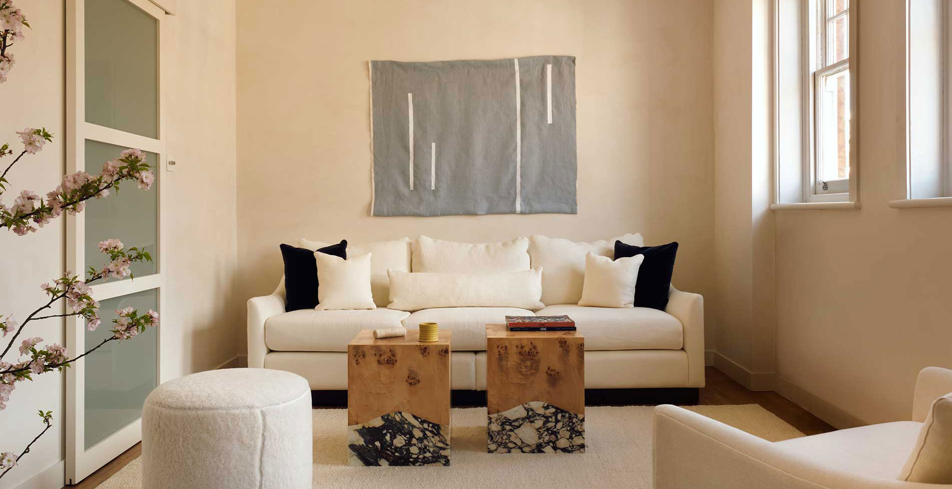 TRANSFORMING THIS VICTORIAN FLAT IN THE HEART OF MARYLEBONE REQUIRED A SENSITIVE BLEND OF CHARACTER AND CONTEMPORARY COMFORT. THE EXISTING ARCHITECTURE PROVIDED A SIMPLE FRAMEWORK AND EXPOSED BRICKWORK - WHICH WE LAYERED DEEP BLUES, RICH TEXTURES, AND SCULPTURAL FORMS TO CREATE DEPTH AND WARMTH. A PALETTE OF CREAMY IVORY, SOFT BRUSHED METALS, AND NATURAL MATERIALS LIKE BURR OAK AND TRAVERTINE BROUGHT SOFTNESS AND COHESION. WE EMBRACED THE CONTRAST BETWEEN HERITAGE AND MODERNITY, CAREFULLY SELECTING PIECES THAT COULD ADAPT TO THE HOME’S ARCHITECTURAL LEGACY WHILE INTRODUCING A SENSE OF QUIET LUXURY AND LIVED-IN ELEGANCE. THE APARTMENT NOW FEELS LIKE A HARMONIOUS CONTINUATION OF THE CLIENT’S LIFESTYLE: EXPRESSIVE AND DEEPLY PERSONAL.